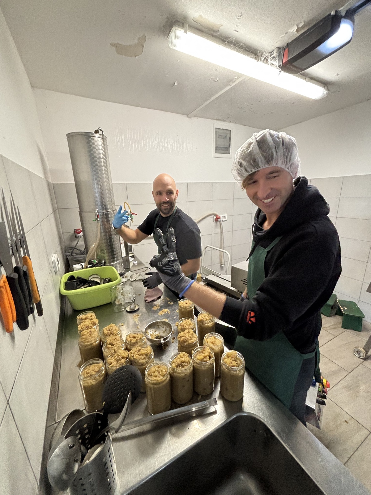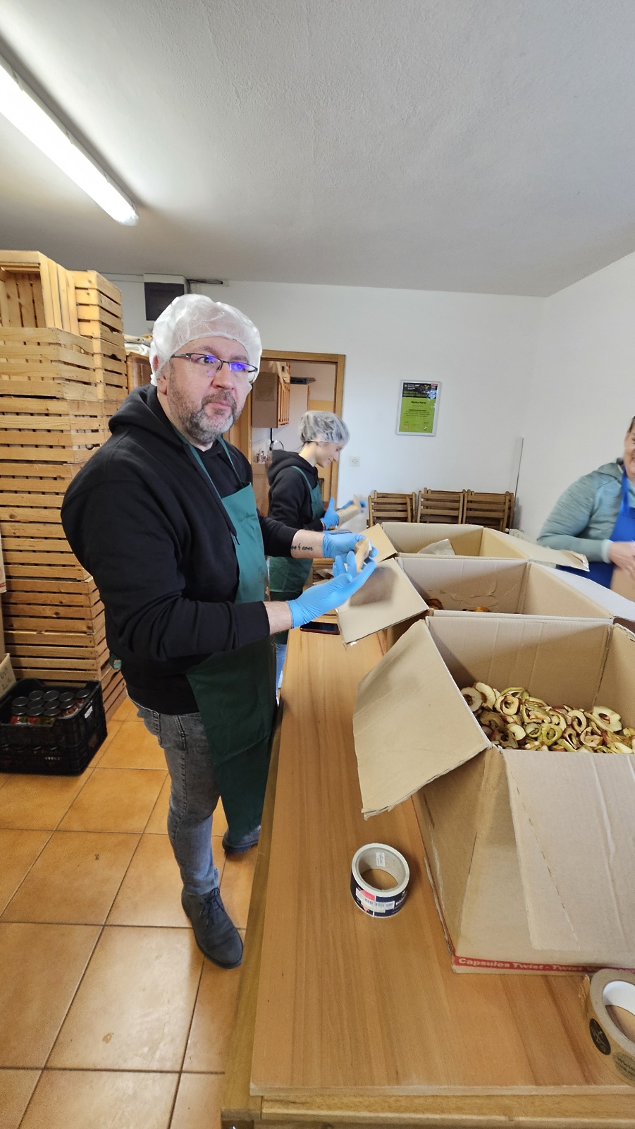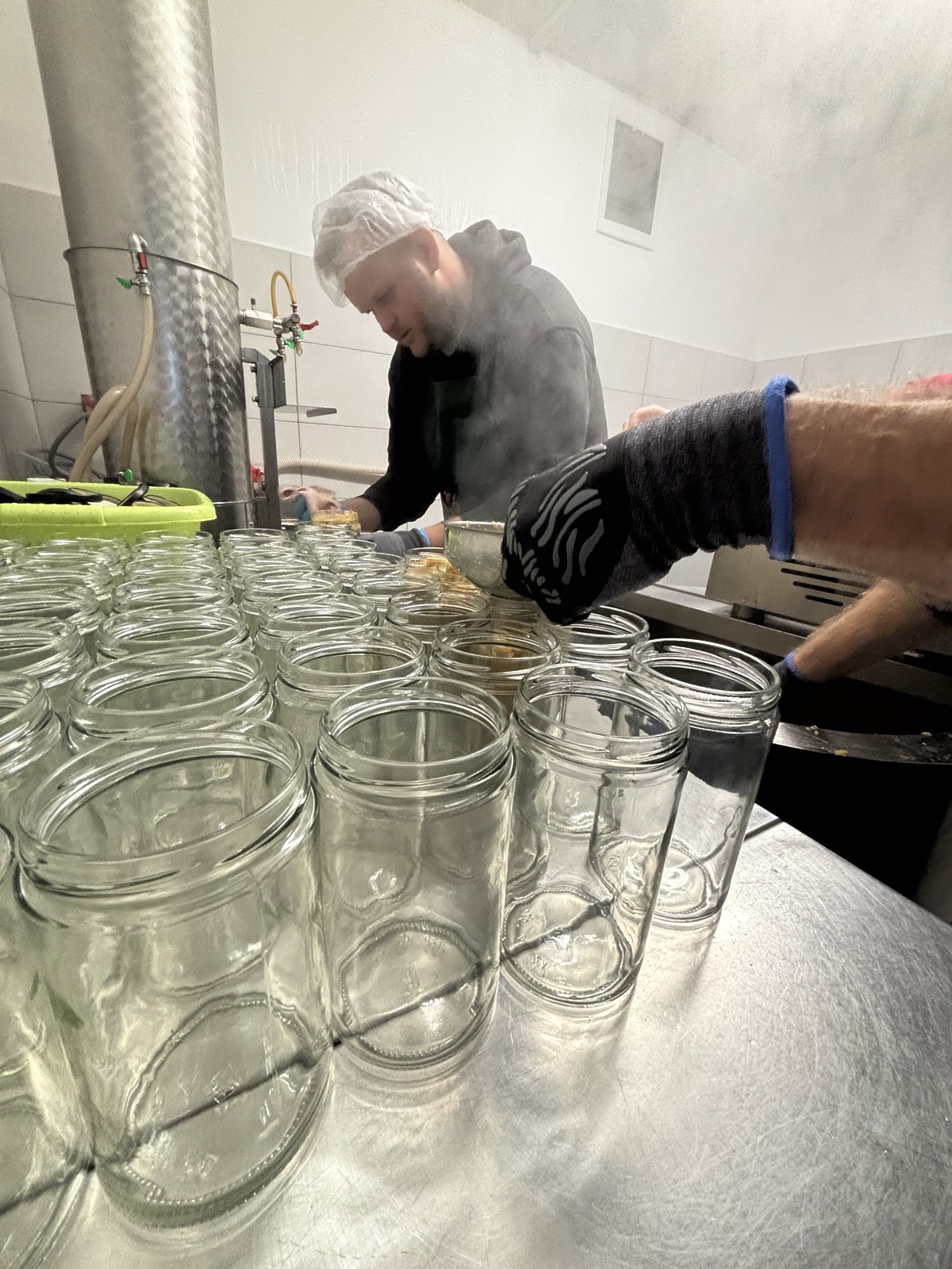 Ekipa pri kuhanju marmelade je natančno uskladila okuse, tudi s sprotnimi degustacijami. Aroma sladkega sadja in začimb je napolnila prostor, medtem pa je ekipa za pakiranje s pridom poskrbela za lep videz daril. Po nekaj urah trdega (a zabavnega) dela smo nalogo uspešno zaključili – in to s prav posebnim ponosom. (Upamo, da Metka ne pohvali vsakega, tako kot je nas!)