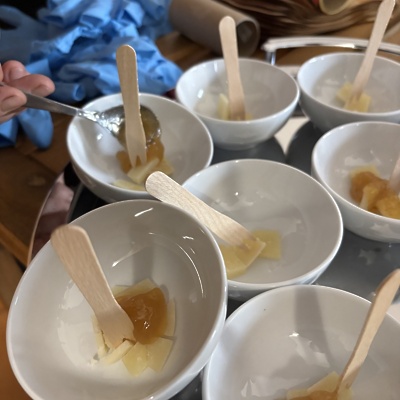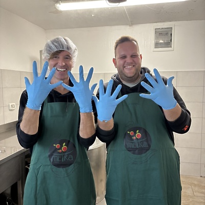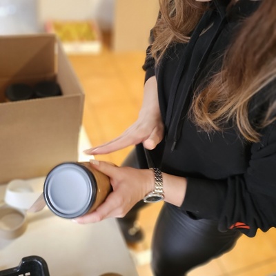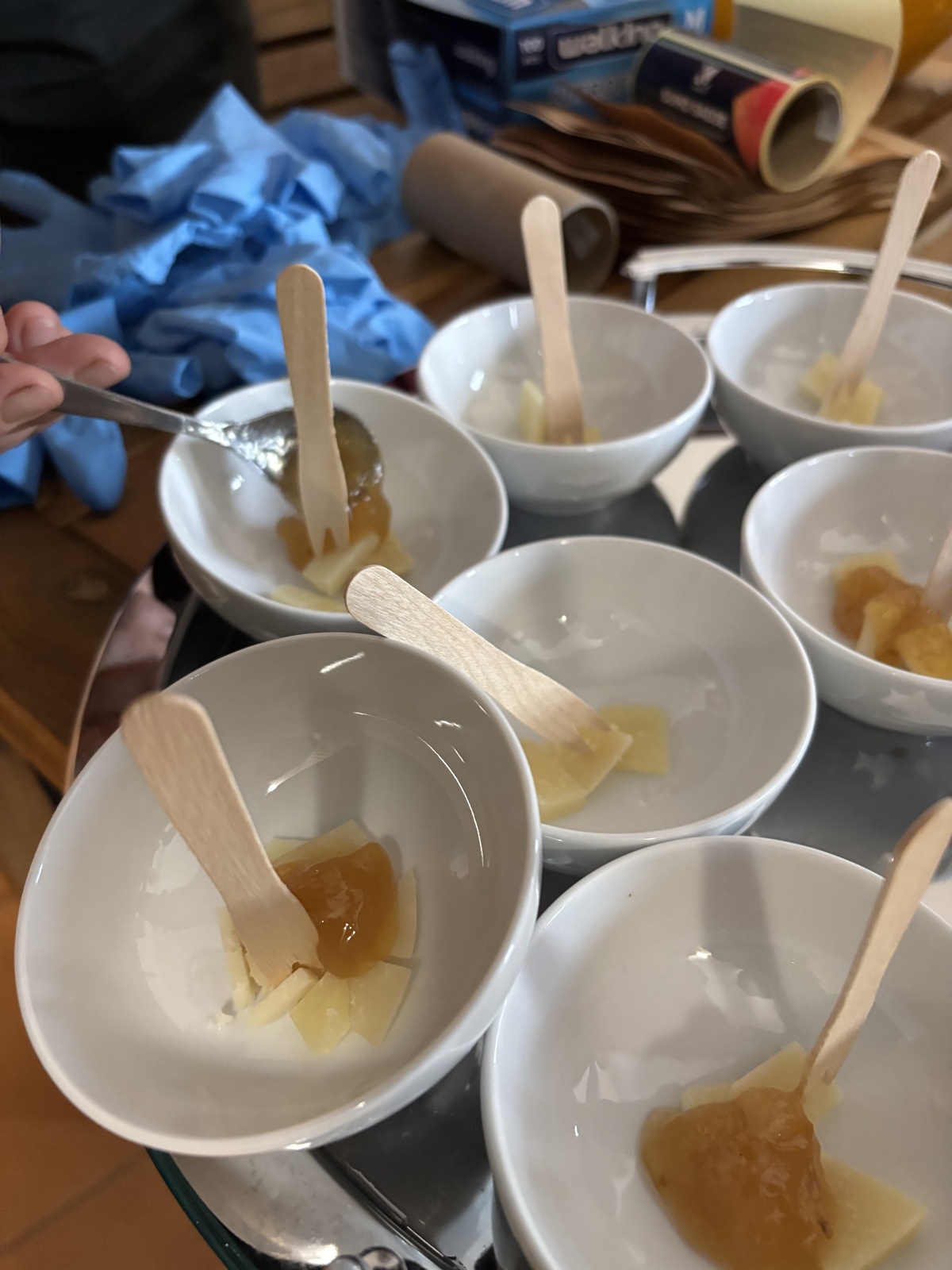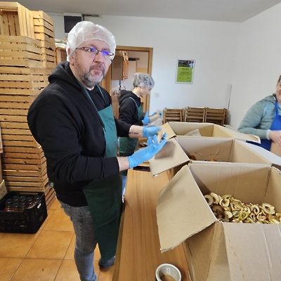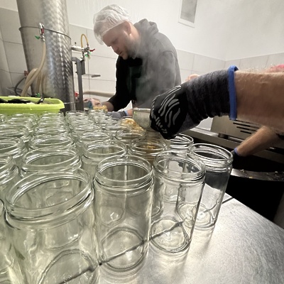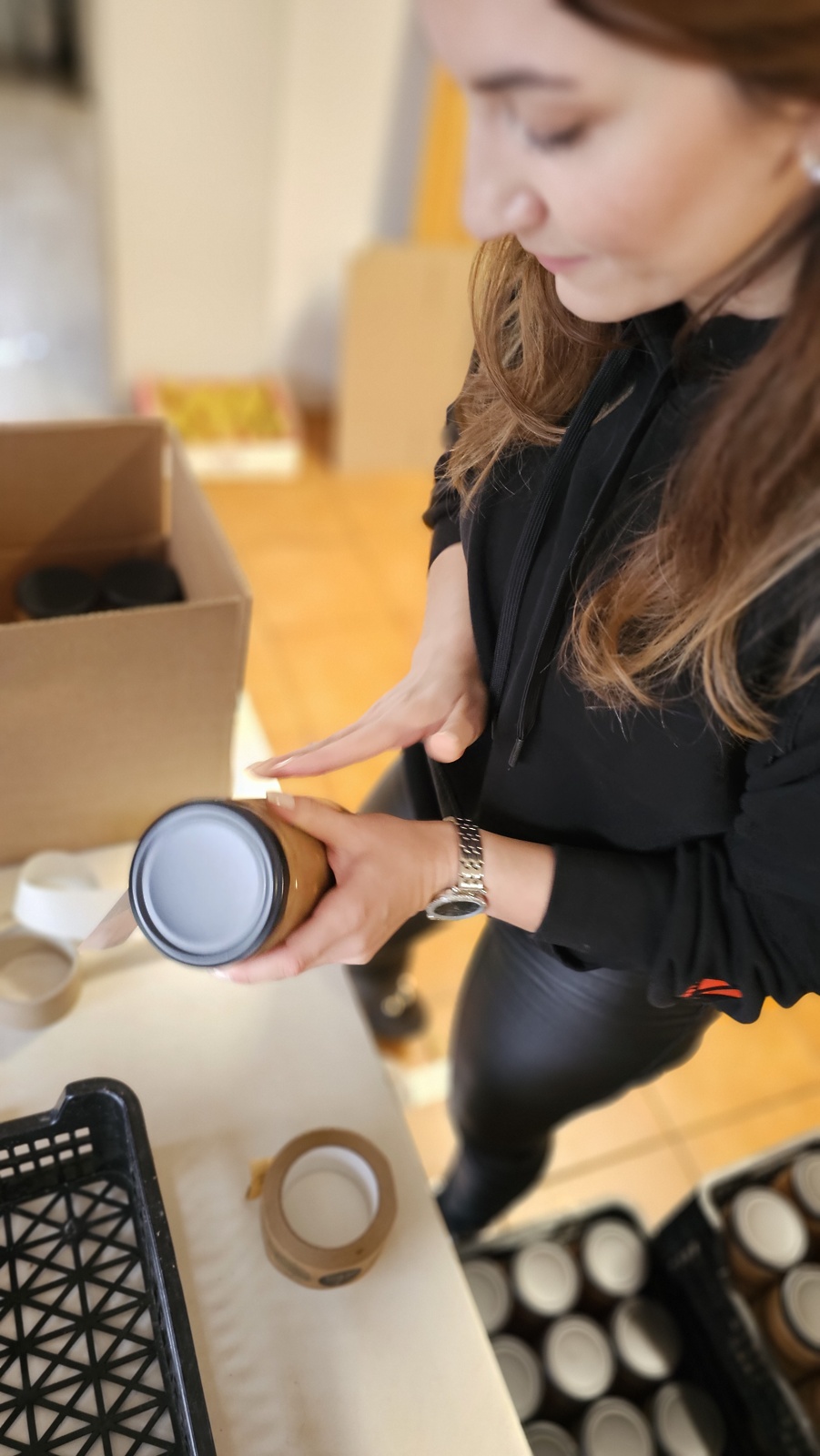 Ekipa pri kuhanju marmelade je natančno uskladila okuse, tudi s sprotnimi degustacijami. Aroma sladkega sadja in začimb je napolnila prostor, medtem pa je ekipa za pakiranje s pridom poskrbela za lep videz daril. Po nekaj urah trdega (a zabavnega) dela smo nalogo uspešno zaključili – in to s prav posebnim ponosom. (Upamo, da Metka ne pohvali vsakega, tako kot je nas!)